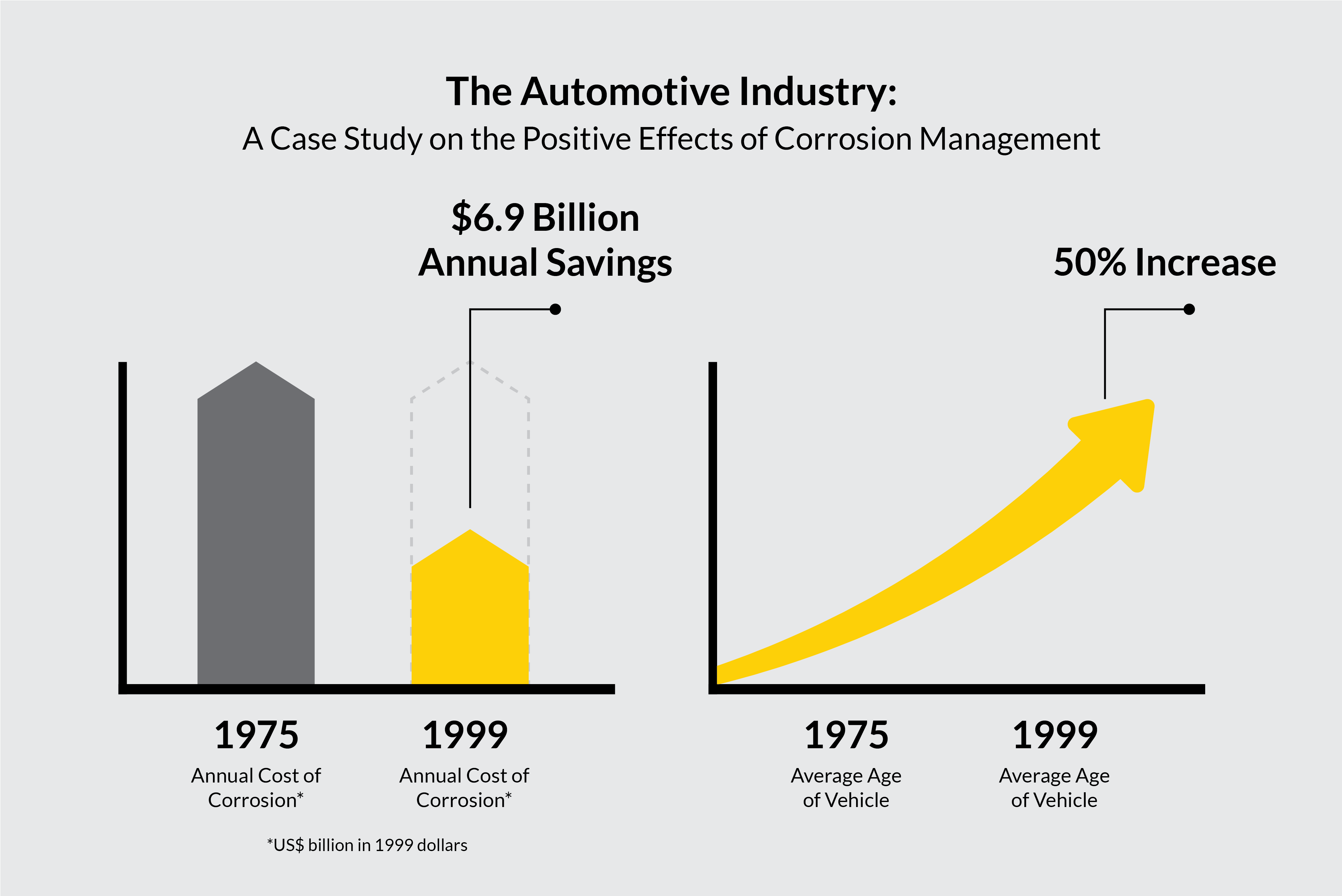 Corrosion, of course, affects countless industries. But the automotive industry is one that recognized early the true cost of corrosion — and the importance of proactively figuring out solutions to control it.